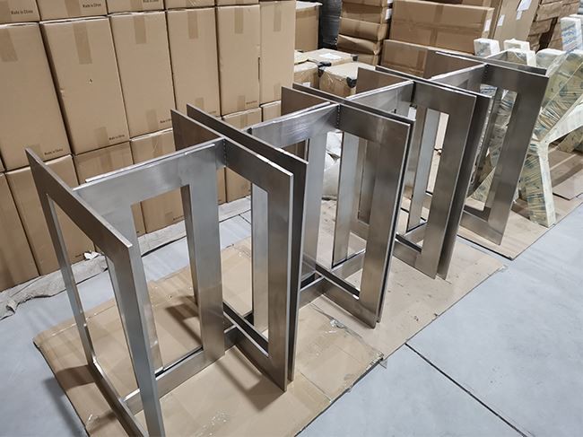 These products are being welded, iron primary color and stainless steel, without any surface treatment. After welding, these products will be sent to the grinding area for grinding. The smooth surface can be better colored, so that the products are safer and more beautiful. The height of these table legs is mainly 1100mm bar size, 710mm table size, 400mm coffee table or bench size. Of course, we also support size customization.